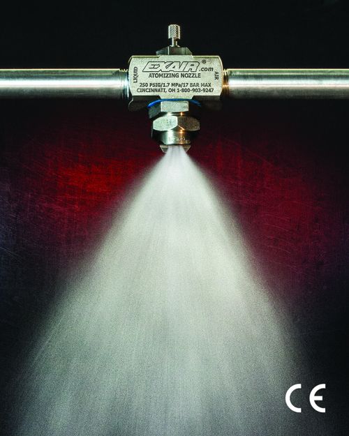 這些二流體霧化噴嘴的材質為不銹鋼結構增強了其耐用性和耐腐蝕性。EXAIR二流體霧化噴嘴有1/4”NPT和1/2”NPT尺寸可供選擇。多種流量的噴灑分布和液體流量可供選擇,以滿足您的製程需求。還提供內部混合和虹吸式二流體霧化噴嘴,以及所有專利無滴漏二流體霧化噴嘴。所有型號均可調節,符合CE認證標準,並提供5年持久保固。
