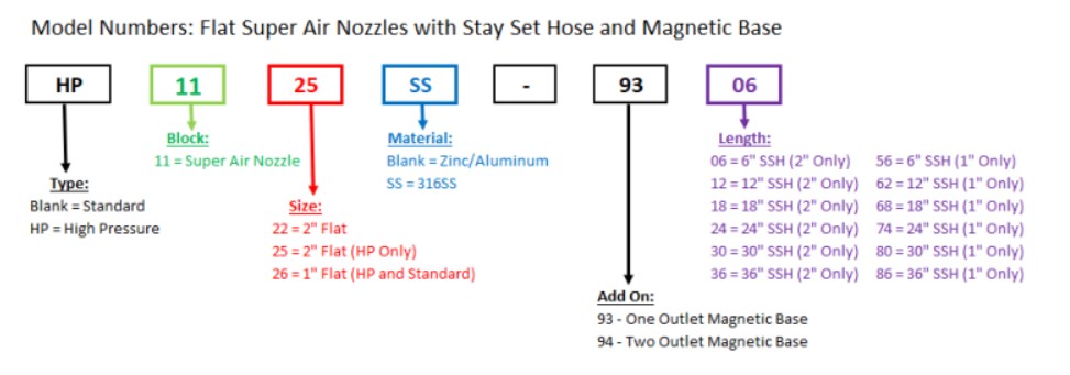 此外,EXAIR還提供磁性底座能與可繞性固定軟管及扁平噴嘴組合使用。磁性底座底部配有強力磁鐵,可牢固吸附於垂直或水平表面上,特別適合需經常移動吹氣位置的應用。磁性底座提供單孔與雙孔設計,每個孔位都有1/4閥門,可手動開關噴嘴。若需將此功能加入系統,只需參照型號編碼表進行選配即可,簡單又方便。