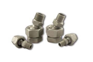 EXAIR 新型迷你萬向接頭可以很容易地調整空氣噴嘴到我們想要的位置。使用這些316不銹鋼材質的迷你萬向接頭,甚至我們的迷你超級空氣噴嘴,可調整至是你需要它朝向的位置。有三種尺寸,這些萬向接頭提供最小的噴嘴調節至50度角,讓你噴嘴可在最大效益的最佳位置。