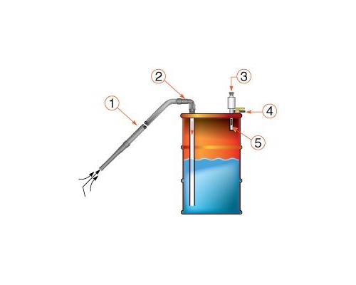 EXAIR 雙向油槽輸送泵浦輸送液體通過可撓性軟管到桶槽。當所有的液體是在桶槽內,將關閉壓縮空氣供應源。如果液體超過桶槽容量時,安全斷關斷閥(5)將防止溢流噴灑。