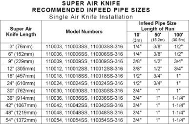 適當的壓縮空氣供應,超級空刀將在80 PSIG時產生每分鐘11,800英尺的排氣速度,這足以從平坦表面噴射輕質材料(實際上您最有可能是清潔灰塵)和較低壓力下的輕質碎屑吹排。如果客戶確實增加了墊片間距,壓縮空氣需求的增加只會加劇供應量不足的問題。