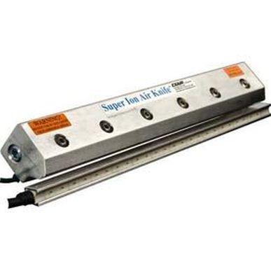 有了這類似的製程應用,我們希望在問題區域中刪除靜電。那麼我們就不用擔心靜電力了。對於它們的製程應用,櫃子具有6”寬的開口,複合材料將退出。所以,我推薦兩個型號111206,6”超級離子氣刀(風刀靜電消除器)套件”,安裝櫃子在外面。一個超級離子氣刀將安裝在紙張上方,以清潔頂部表面,另一個安裝在紙張下方以清潔底部表面。我建議他們將超級離子氣刀定位在45度方向。在複合片材的反向流動方向的角度。