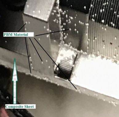 在我們的非導電材料的經驗中,靜電可能是一個很大的問題。在這種情況下,就是這樣。 塑料噴砂介質(PBM)正在“吸附”到包括待清潔的複合材料的所有內容。他們在離開塑料噴砂介質室時正在遺失材質。與任何類型的塑料噴砂系統一樣,您希望以最經濟地重新使用材料減少浪費並保持操作時間更長。如下圖所示,由於靜電,塑料噴砂介質(PBM)吸附內部組件。這種靜電力是將塑料噴砂介質(PBM)保持在複合材料板上,並允許其離開塑料噴砂室。