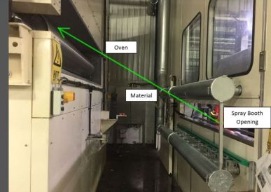因為它們以160 m/min的速度運作,當介質離開噴霧室時,正在產生一個圖案。該圖案足夠強大以克服煙氣收集系統的真空壓力。這樣可以讓多餘的薄霧離開噴霧室。然後將其收集在安全帶外面的烤箱和地板表面。這造成了一個安全問題以及一大堆混亂。