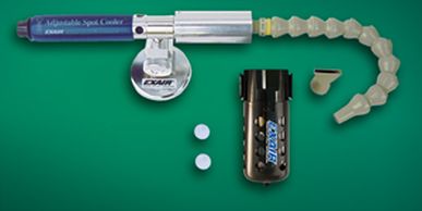 EXAIR 可調溫低溫冷卻槍採用渦流管,使用一般環境空氣溫度的壓縮空氣來產生低溫氣流達-30°F冷氣流。使用溫度控制閥,他們可以輕鬆地調整排出熱氣流使出口溫度降和流量(SCFM),以提供足夠的冷卻水平,同時控制出口流量,不會中斷可調溫低溫冷卻槍運作。使用集成的磁性底座和柔性管,它們可以輕鬆地將它安裝到機器人的臂上,同時引導冷空氣吹過刷子和零件,使他保持冷卻。