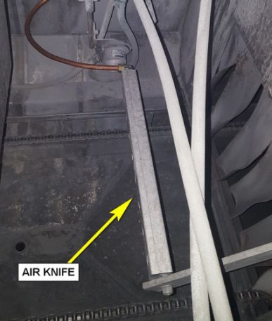 EXAIR 超級氣放大器的最大可能條件為275°。超級氣刀預先安裝了不銹鋼墊片,最高額定溫度為400°F。這兩個組件的額定溫度超過洗衣機最大可能的溫度條件,客戶對系統設計感到自信。