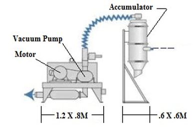 辦公家具製造公司希望透過安裝兩個新的自動化邊緣條紋生產線在他們的設施中來增加生產。這些生產線設計用於將塑料膜膠合到層壓木板的外側邊緣。每個系統包含四個膠合工作站,一個位於該生產線上的每一側,相距15米。他們的目標是複制他們現有的生產線,但是希望佔地面積較小(而且我們都沒有聽到這個)。他們在有限的空間內安裝相同類型的設備時遇到問題。由於他們無法改變自動化生產線,所以不得不考慮他們下一個最大的系統;真空輸送系統。它包含電動馬達,真空泵,蓄能器和控制面板組成。所以,它的佔地面積很大(參考草圖如下)。