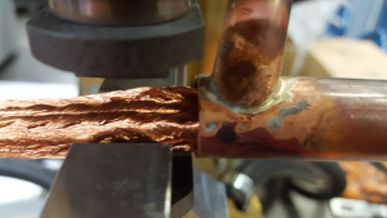 要配置此設置,EXAIR 可調溫低溫冷卻槍的冷出口送入圍繞銅編織物的管(如上所示)。該管圍繞焊接的銅,具有低於冷凍空氣以除去熱量並冷卻銅。