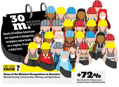 OSHA和CDC使噪音暴露作出這些陳述。你知道近3000萬美國工人幾乎每天都有暴露在危險的噪音值,超過72%的報告事件發生在製造環境中?噪音引起的聽力損失是自我報告的職業傷害的第二大,自2004年以來,超過125,00名工作人員經歷了一定程度的永久性聽力損失。過大的噪音值也可能降低生產力,有助於增加壓力水平,通信錯誤以及稱為耳鳴或耳鳴不穩定的不可逆狀態。事實上,與職業聽力損失有關的殘疾索賠每年增加到超過2.42億美元。