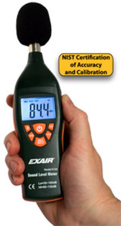 此外,我們還提供EXAIR 數位噪音計測量35至130 dBA的噪音。該數位噪音計具有背光LCD顯示螢幕,快慢響應時間,持有最大值包括NIST(國家標準與技術研究所)認證。
